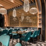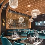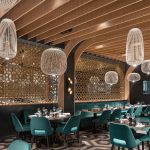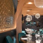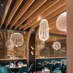 Nella sala del ristorante libanese Mon Liban, le forme morbide di Spokes delineano la personalità dello spazio, agendo come un raffinato contrappunto alla complessa geometria delle pareti e del soffitto, che evoca l’immagine di uno scafo rovesciato. La creativa combinazione delle diverse forme della famiglia Spokes arricchisce il progetto con un affascinante gioco formale di vuoti e pieni, accompagnato da un suggestivo alternarsi di luci e ombre proiettate sulle pareti e sul soffitto.
